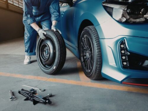 ジャッキと工具があれば自分で交換できます。ただし、ホイールナットの締め付けトルクが不適切だと走行中にタイヤが外れる危険があるため、不安な方は専門店に依頼することをおすすめします。